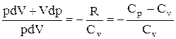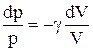 Интегрируя это уравнение в пределах от p1 до р2 и соответственно от V1 до V2, а затем потенцируя, придем к выражению
