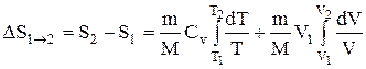 Физический смысл имеет не сама энтропия, а разность энтропии. Исходя из выражения (2.32), найдем изменение энтропии в процессах идеального газа. Так как