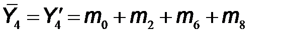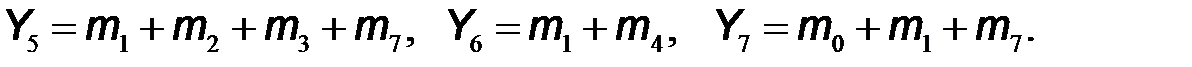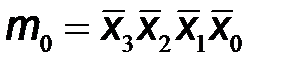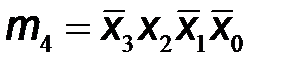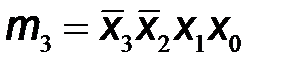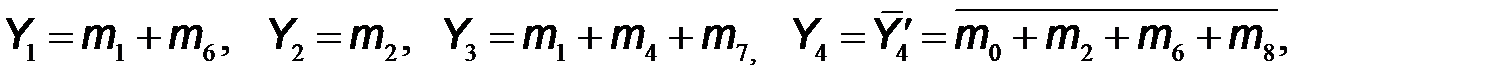 Используя обозначения логических произведений mi на каждом из наборов входных переменных, которые приведены в последнем столбце таблицы, выходные логические функции запишем в следующем виде