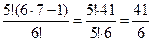 Третий способ. Первая лампочка может или гореть, или не гореть, т.е. имеется два возможных исхода. То же самое относится и ко второй, и к третьей лампочкам. Мы предполагаем, что лампочки горят или нет независимо друг от друга. По Рисунок 4.3 правилу умножения получаем, что число всех способов освещения равно 2 • 2 • 2 = 8. Ответ: 8. У каждого из этих трех способов решения в каждом конкретном случае есть свои преимущества и свои недостатки. Выбор способа решения – за вами! Отметим все же, что правило умножения позволяет в один шаг решать самые разнообразные задачи. Например, оно приводит к крайне важному в математике понятию факториала. Рассмотрим сначала примеры. Пример 5. В семье – 6 человек, и за столом в кухне стоят 6 стульев. В семье решили каждый вечер, ужиная, рассаживаться на эти 6 стульев по-новому. Сколько дней члены семьи смогут делать это без повторений? Решение. Ответ оказывается неожиданно большим: почти два года! Объясним его. Для удобства рассуждений будем считать, что семья (бабушка, дедушка, мама, папа, дочь, сын) будет рассаживаться на стулья поочередно. Нас интересует, сколько всего существует различных способов их размещения на стульях. Предположим, что первой усаживается бабушка. У нее имеется 6 вариантов выбора стула. Вторым садится дедушка и независимо выбирает стул из 5 оставшихся. Мама делает свой выбор третьей и выбор у нее будет из 4 стульев. У папы будет уже 3 варианта, у дочки – 2, ну а сын сядет на единственный незанятый стул. По правилу умножения получаем, что всего имеется 6·5·4·3·2·1 = 720 различных способов размещения. Таким образом, в «игру с рассаживаниями» семья может играть 720 дней, т. е. почти 2 года. Ответ: 720. Пример 6. Десять разных писем раскладывают по одному в десять конвертов. Сколько существует способов такого раскладывания? Решение. Предложенная ситуация отличается от предыдущей (пример 5). Действительно, там были люди и стулья, здесь – письма и конверты. Однако и здесь, и там требуется узнать, сколькими способами можно разместить п предметов на п местах. Повторяя предыдущее решение, получаем, что всего имеется 10·9·8·7·6·5·4·3·2·1=3 628 800 способов раскладывания писем по конвертам. Более 3,5 миллионов! Ответ: 3628800. Как мы видим, условия задач – разные, а решения, да и полученные ответы, по сути дела, одинаковы. Удобно поэтому ввести и одинаковые обозначения для таких ответов. Определение. Произведение первых подряд идущих п натуральных чисел обозначают п! п! = 1·2·3·…·(п-2)·(п-1)·п Знак п! читается как «эн факториал», что в дословном переводе с английского языка означает «состоящий из п множителей». Приведем несколько первых значений для п: 1! = 1 2! = 1·2 = 2 3! = 1·2·3 = 6 4! = 1·2·3·4 = 24 5! = 1·2·3·4·5 = 120 6! = 1·2·3·4·5·6 = 720 и т.д. Рассмотрим еще несколько примеров: Пример 7. Вычислить: а) 3!; б) 7!-5!; в) Решение. а) 3!=1∙2∙3=6. б) т.к. 7!= 1∙2∙3∙4∙5∙6∙7 и 5!= 1∙2∙3∙4∙5, то 5! можно вынести за скобки, тогда получим 5!(6∙7-1)= 1∙2∙3∙4∙5∙41=4920. в) Пример 8. Упростить выражение: Решение. Как же сформулировать общее утверждение, частными случаями которого являются решения примеров 3, 5 и 6? Вот один из возможных вариантов. ТЕОРЕМА: п различным элементам можно присвоить номера от 1 до п ровно п! различными способами. Каждый способ нумерации от 1 до п, о котором идет речь в теореме, часто называют перестановкой данного п -элементного множества. Действительно, можно считать, что каждая такая
