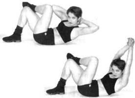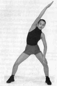 Наклоны туловища вправо-влево с опорой одной рукой на бедро и подниманием другой ки вверх, при этом вытягиваясь в сторону-вверх, что приводит к растягиванию боковых мь| туловища |умовища с опорой руками о бедра растягивает мышцы спины, косые мышцы, 1ые мышцы. Использование движений рук в сторону с отведением их назад допол-'►лзывает воздействие на растягивание грудных мышц.