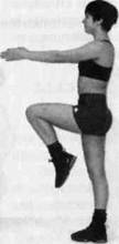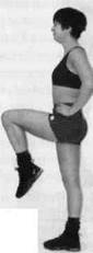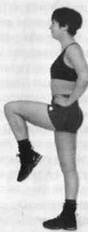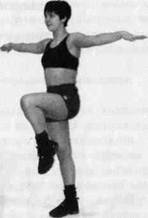 Снизить экстремумы (максимальные значе ные свойства ния ударных нагрузок и проявления связанных с ОДА ними негативных явлений — это хорошие аморти- зационные свойства ОДА занимающихся и правильная техника. Поэтому вопросам укрепления ОДА и технической подготовке на занятиях должно уделяться серьезное внимание. Амортизационные свойства мышц и соединительнотканных элементов ОДА зависят от их уп-руговязких свойств. Упругость ОДА — это качество, которое позволяет накапливать (запасать) энергию упругой деформации в сократительных и соединительных структурах мышц при их растягивании внешними силами и отдавать ее (совершать работу) при уменьшении действия внешней силы. Типичный пример - пружинистые прыжки. В фазе амортизации упругая энергия запасается, в фазе отталкивания — отдается, помогая нам подпрыгнуть выше без дополнительных затрат метаболической энергии. В этом случае работает описанный выше механизм рекуперации энергии упругой деформации. Вязкость ОДА — это качество ОДА, которое приводит к рассеиванию, т.е. потере энергии. Упругая энергия может сохраняться только в напряженных мышцах и только непродолжительное время. Это свойство используется для увеличения нагрузки на ОДА и интенсификации тренировки. Например, при использовании техники "Pliometric" в комбинацию движений специально вставляют кратковременные паузы удержания нагрузки напряженными мышцами. За 0,5 — 1 секунду энергия упругой деформации успевает рассеяться и продолжение движения требует значительного произвольного напряжения мышц. Это сопровождается рекрутированием высокопороговых двигательных единиц, закисляющих мышцы, и увеличением энергозатрат. Упругие (амортизационные) свойства мышц и их соединительнотканных структур могут улучшаться при выполнении, например, упражнений Hi и SHi impact, но только в случае регулярного их применения. В упражнениях базовой техники присутствуют элементы маховых движений, которые в исполнении неопытных занимающихся часто принимают форму баллистических, т.е. неконтролируемых походу выполнения, движений. Это следует учитывать с той точки зрения, что в них кроме значительных мышечных напряжений при разгоне звена тела (положительная фаза) имеет место его торможение за счет усилия мышц-антагонистов (отрицательная или амортизационная фаза). При этом мышцы-ан мышц мы познакомились со следующими режимами ра- боты мышц, которые могут присутствовать при выполнении базовых движений: — изометрический — мышцы напряжены, но — преодолевающий - мышцы-синергисты укорачиваются, совершая механическую работу против преодолеваемой силы; — уступающий — напряженные мышцы-синергисты удлиняются за счет действия внешней растягивающей силы; — баллистический - в начале движения мыш продолжают удлиняться за счет действия силы инерции разогнанного сегмента тела. Кроме перечисленных режимов в аэробике но ность воздействия на опорно-двигательный аппа- регулированию рат при выполнении базовых (и абсолютного воздействия на занятия, используя следующие приемы. в изометрическом режиме может использоваться: —увеличение плеча действия силы - "рычага" (например, статическое удержание более низкого подседа в плиометрической тренировке); —увеличение момента действия силы (присед на одной ноге, дополнительные отягощения);