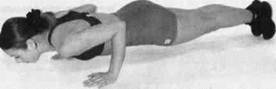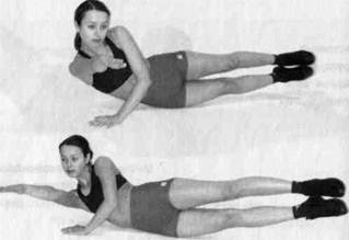 При этом эффективность развития силовых способностей снижается, но это не является существенным недостатком, так как задача таких занятий не максимальное развитие силовых способностей, а улучшение физического состояния занимающихся. Эта задача успешно может быть решена при соблюдении определенных принципов организации стато-динамической части аэробного класса Принципы В партерной части занятия используются так стато- называемые стато-динамические (СДУ) упражне- динамической ния, получившие свои названия по режиму сокра- тренировки щения мышц. В "классическом" варианте, стато-динамические — это такие упражнения силового характера, в которых предусмотрены кратковременные остановки (на 0,5- 1с) в различные моменты цикла движения. Например, при сгибании и разгибании рук в упоре лежа остановки делаются в промежуточном и крайнем нижнем положениях туловища. Смысл этого приема: — рассеять энергию упругой деформации в мышцах; — включить режим статического удержания в наиболее тяжелый момент, когда плечо действия силы максимально; — вызвать необходимость проявления дополнительного усилия для разгона массы тела после кратковременной паузы; — удлинить период напряженного состояния мышц, когда кровоток через них нарушен. Все это способствует увеличению нагрузки на мышцы и ускоряет их утомление, т.е. увеличивает эффект силовой тренировки, но при сохранении принципа травмобезопасности. В тренировочный комплекс партерной части аэробного класса включаются не только стато-ди-намические упражнения, но и квазиизотонические, статические, обычные динамические силовые упражнения, а также стретчинг в тренировочном и релаксирующем режимах. Квазиизотонические упражнения. Их название можно перевести как "почти изотонические". Это — медленные, плавные упражнения силового характера, когда ставится задача поддерживать постоянную степень напряжения мышц. То есть, усилия не меняются, а мышцы не расслабляются на протяжении всего подхода. В таких упражнениях ускорение утомления достигается за счет нарушения кровотока через мышцы. При этом они наиболее безопасны, так как отсутствуют моменты максимального напряжения мышц и перегрузки ОДА в фазе отрицательной (уступающей) работы. Статические упражнения, как таковые, используются редко. Обычно они выполняются в виде удлиненной паузы (удержания) в составе стато-динамического упражнения. Стретчинг подробно описан в разделе 2.3. Для краткости все перечисленные упражнения партерной части занятия, кроме стретчинга, далее будем обозначать как СДУ (стато-динамические упражнения). В большинстве случаев упражнения выполняются без тренажеров, отягощений или предметов. Для этого есть основания. Во-первых, практически все группы мышц могут быть проработаны с необходимым тренировочным эффектом, достаточной эмоциональностью и разнообразием занятий и без использования снарядов, во-вторых, такое построение тренировки наиболее экономически рентабельно, травмобезопасно и вооружает занимающихся полезными навыками организации самостоятельных занятий в любых условиях. Тем не менее, использование разнообразных пред-