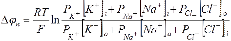 Экспериментально установлено, что цитоплазма в состоянии покоя имеет отрицательный потенциал, а окружающая среда- положительный. Действительно, в первом приближении В клетке Снаружи Это неравномерное распределение концентраций обусловлено Ионы Между внутренней и внешней поверхностями мембраны возникает разность потенциалов мембранной природы. Эта разность потенциалов между клеткой и окружающей средой, измеренная в состоянии физиологического покоя, называется потенциалом покоя. Если принять, в первом приближении, что потенциал покоя определяется только диффузией ионов