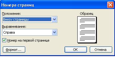 Рисунок – Диалоговое окно Номера страниц