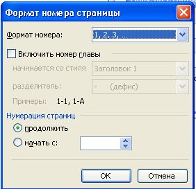 Рисунок – Диалоговое окно Формат номера страницы Используя панель инструментов Колонтитулы (рисунок 6.18), можно разместить на каждой странице документа также и любую другую информацию.
