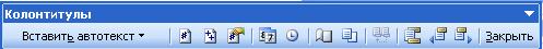 Рисунок – Панель инструментов Колонтитулы