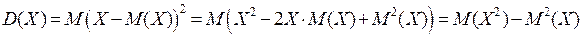 Из этого определения следует, что дисперсия характеризует меру рассеивания возможных значений около её математического ожидания. Определение 4. Величина Получим более удобную формулу для вычисления дисперсии.