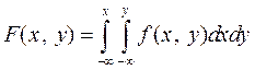 Геометрически функция представляет собой вероятность попадания случайной величины (X, Y) в бесконечный квадрат х с вершиной в точке (х, у). Из определения функции распределения следуют ее свойства. 1. 2. 3. 4. 5. Рассмотрим предел Можно показать, что этот предел равен Свойства плотности распределения: 1. 2. Вероятность попадания СВ (X, Y) в область D равна