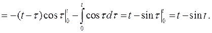 Тогда по таблице изображений находим Замечание. Аналогично, используя теорему об интегрировании оригинала, можно решать интегральные уравнения, т.е. когда в уравнении искомая функция находится под знаком интеграла. Пример 3. Найти решение интегрального уравнения
