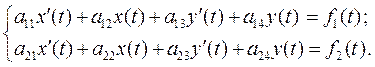с начальными условиями: Обозначим Тогда, применяя к обеим частям уравнений системы преобразование Лапласа и используя теорему о дифференцировании оригинала, получим систему для определения изображений искомых функций