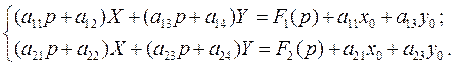 при начальных условиях Применяя преобразование Лапласа, получаем систему линейных алгебраических уравнений