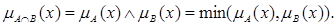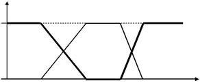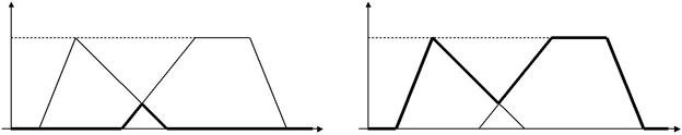 Графічна інтерпретація цієї операції подана на рис. 6.6. (жирна суцільна лінія відповідає функції належності вислідної множини).