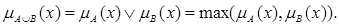 Об’єднанням нечітких множин А і В називають нечітку множину