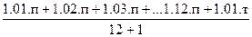где 1.01.п.... – стоимость имущества на 1 января прошлого налогового периода; 1.01.т – стоимость имущества на 1 января текущего налогового периода; 12+1 – количество месяцев в налоговом периоде, увеличенное на 1. Аналогично рассчитывается стоимость имущества за отчетный период, причем при ее расчете используются данные за весь отчетный период с начала года, т.е. 3, 6 или 9 месяцев. Впоследствии, для целей уплаты авансовых платежей берется только 1/4 от рассчитанного размера налоговой базы за отчетный период. Например, размер налоговой базы за полугодие будет определяться следующим образом: