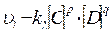 швидкість прямої реакції відповідно до ЗДМ (1):