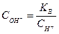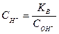 К - константа дисоціації води, дорівнює 1,8 . 10-16 при 220С; СН2О - концентрація недисоційованих молекул води, яку внаслідок малої дисоціації води можна вважати сталою і такою, яка дорівнює загальному числу грам-молекул води в одному літрі; тобто 1000/18 = 55,56 моль/ л, СН+, СОН- - відповідно концентрація водневих і гідроксильних іонів в грам-іонах на літр розчину. Якщо перенести сталі величини К і СН2О по один бік рівняння, то отримаємо вираз: СН+. СОН- = К . СН2О, де добуток двох сталих величин К і СН2О також являє собою сталу величину, яку позначимо КВ. Таким чином, добуток концентрації водневих і гідроксильних іонів (точніше, активності) при даній температурі є величина стала і називається іонним добутком води. При 220С іонний добуток води КВ дорівнює 10-14. У дистильованій воді концентрації водневих і гідроксильних однакові: СН+ = СОН- = Ö10-14 = 10-7 моль/л. Величина іонного добутку КВ є сталою не тільки для води, але і для будь-яких розбавлених водних розчинів, в тому числі для розчинів кислот, лугів. Тому, якщо відома концентрація іонів Н+, легко визначити концентрацію ОН- і навпаки: