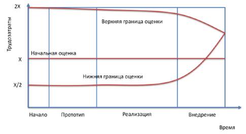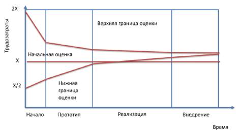 Проработка ключевых функциональных требований и детальное планирование их реализации позволяет уменьшить разброс начальных оценок, примерно, в 2 раза: от -30% до +50%. Детальное проектирование и разработка прототипа будущей системы позволит получить еще более точные оценки общей трудоемкости: от -10% до +15%. Может оказаться так, что по результатам прототипирования, уточненные оценки суммарной трудоемкости окажутся неприемлемыми. В этом случае проект придется закрыть досрочно, но потери при этом, будут значительно меньше, чем в случае, если то же самое произойдет, когда проект уже в 2 раза превысит первоначальную оценку трудоемкости. Если с заказчиком не удается найти взаимоприемлемое решение при первоначальной оценке проекта, то разумно попытаться договориться о выполнении проекта в 2 этапа с самостоятельным финансированием: 1. Исследование. Бизнес-анализ, уточнение требований, проектирование и прототипироание решения, уточнение суммарных оценок трудозатрат. Эта работа, как правило, требует 10 % общих трудозатрат и 20% времени всего проекта. 2. Непосредственно реализация. Если уточненные оценки трудозатрат окажутся приемлемыми для заказчика. С вменяемыми заказчиками это часто удается.