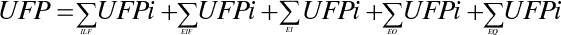 Каждый "Check box" оценивается, как 1 DET. Выпадающий список — 1 DET. Каждая управляющая кнопка должна рассматриваться как отдельная транзакция. Например, если оценивать управляющую транзакцию по кнопке «OK», то, для данной транзакции мы имеем 1 FTR и 8 DET. Поэтому, согласно матрице (Таблица 10), мы можем оценить сложность транзакции, как Low. И, наконец, в соответствие с матрицей (Таблица 12), данная транзакция должна быть оценена в 3 не выровненных функциональных точек (UFP). Определение суммарного количества не выровненных функциональных точек (UFP) Общий объем продукта в не выровненных функциональных точках (UFP) определяется путем суммирования по всем информационным объектам (ILF, EIF) и элементарным операциям (транзакциям EI, EO, EQ).