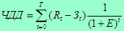 Е - норма дисконта, равная приемлемой для инвестора норме дохода на капитал.