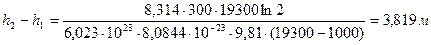 Число частиц на высоте h1 в два раза больше, чем на высоте h2, т. е. = 2. После подстановки численных значений величин получим