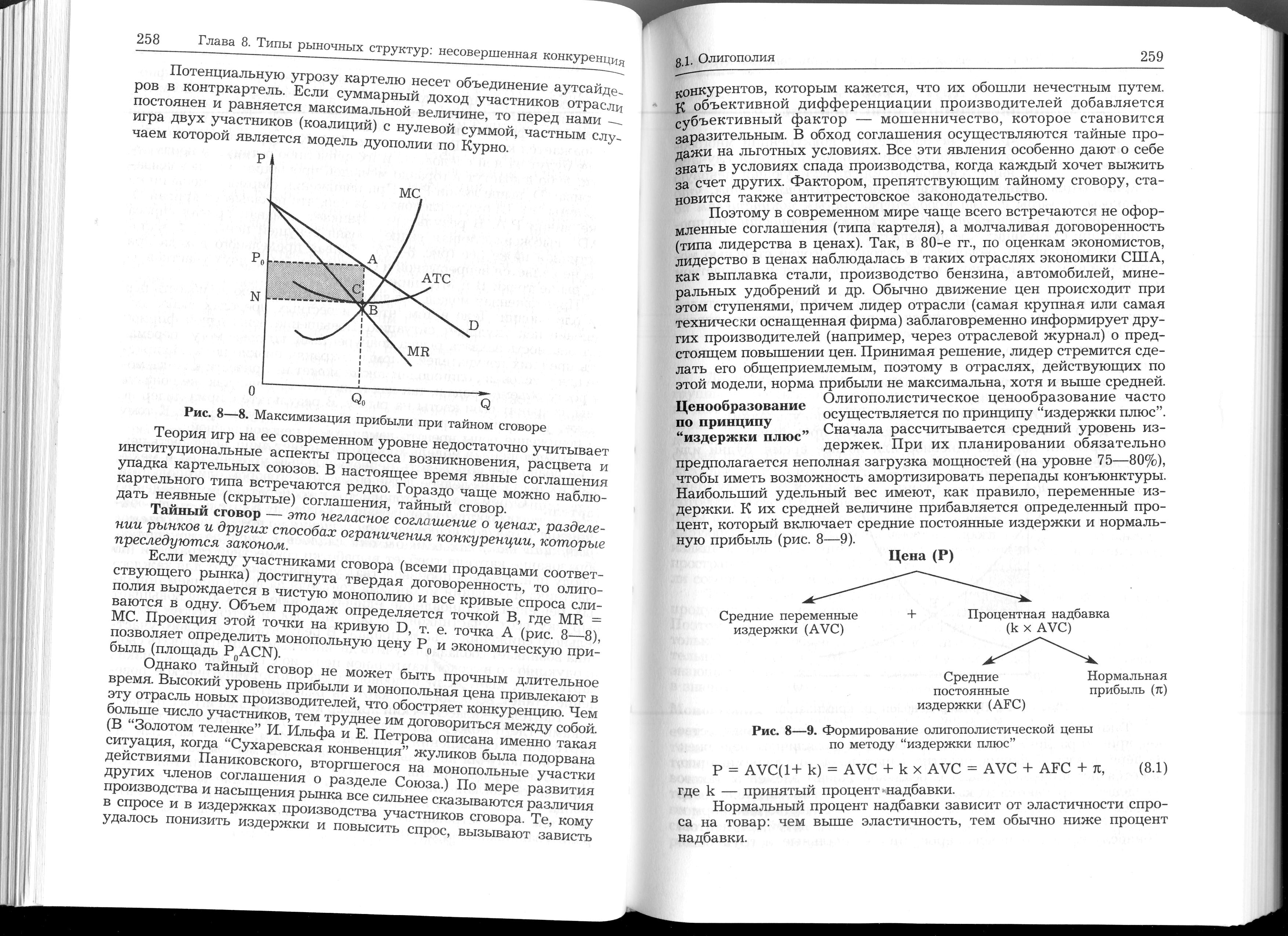 При их планировании обязательно предполагается неполная загрузка мощностей (на уровне 75—80%), чтобы иметь возможность амортизировать перепады конъюнктуры. Наибольший удельный вес имеют, как правило, переменные издержки. К их средней величине прибавляется определенный процент, который включает средние постоянные издержки и нормальную прибыль (рис. 8—9).