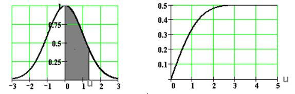 Рис. 20 Функция помогает определить вероятность ошибки при приеме двоичного символа (0 или 1) и воздействии нормированной гауссовой помехи, если пороговый уровень принятия решения имеет значение u. Вероятность ошибки численно будет равна Р ош=0,5- Ф (u) (площадь незачерненного «хвостика»).