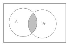 Рис.3 В примере 2 А + В= { 2, 4, 5, 6 }. Аналогичный смысл имеет сумма любого числа событий. Если I -произвольное множество значений некоторого индекса i, A Произведением двух событий А и B называют событие AВ (А дящее тогда и только тогда, когда происходит и событие А, и событие В (все события А Произведение событий соответствует пересечению множеств, (Рис.4).