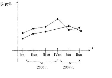 Прогноз объёмов выпуска и реализации продукции (услуг) В этой части раздела следует показать динамику развития работ по проекту, связанных с выпуском и реализацией продукции и услуг. Исходной информацией для прогнозных оценок являются: оценка потенциального рынка сбыта, план маркетинга, оценка затрат на разработку и производство продукта. Оценка объемов выпуска производится с поквартальной разбивкой, либо с месячной в любых приемлемых единицах счета (штуках, рублях и т. п.). Динамику прогноза можно показать на рисунке 2.1, объем выпуска и продажи продукта на диаграмме (рис. 8).