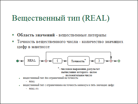 Область значений числового типа NUMBER – все числа, т.е. все числовые литералы, включающие вещественные и целочисленные.