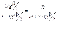 Так как OF = R, NF = m + T, где T - длина тангенса вспомогательной кривой, то: