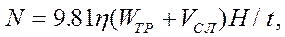 Рассмотрим влияние на точность подсчета мощности переменных величин WТР, VСЛ, H. Логарифмируя и дифференцируя выражение (3), получим