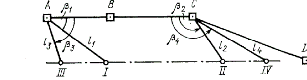 где K- число промежуточных сторон в полной диагонали ряда. Полагая mTU=mq,можно вычислить среднюю квадратическую ошибку измерения углаmb: mb=