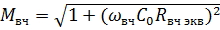 Из выражения видно, что при заданных частотных искажениях, с повышением верхней усиливаемой частоты ωвч необходимо уменьшать сопротивление R вчэкв. Поскольку сопротивление R вчэкв пропорционально сопротивлению нагрузки по переменному току R н~. то с уменьшением R вчэкв снижается сопротивление R н~. Последнее приводит к уменьшению коэффициента усиления по напряжению. Таким образом, в широкополосном усилителе при повышении частоты ωвчдля обеспечения того же коэффициента частотных искажений Мвч приходится снижать коэффициент усиления каскада. Отсюда важной величиной, характеризующей широкополосность усилительного каскада, является произведение сквозного коэффициента усиления по напряжению в области средних частот К*u ср на верхнюю граничную частоту f вчгр. на которой коэффициент частотных искажений M вч=√2. Это произведение К*u ср ∙ f вчгр пропорционально площади частотной характеристики усилительного каскада и поэтому называется площадью усиления каскада П=К*u ср ∙ f вчгр. Площадь усиления характеризует способность усилителя создавать усиление в широкой полосе частот.