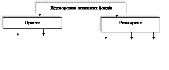 де Квиб.ф., Квиб.н. – відповідно, фактичний і нормативний коефіцієнт вибуття основних фондів по підприємству. Форми відтворення основних фондів наведено на рис. 12.4.