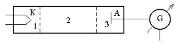 Немецкие физики Д. Франк и Г. Герц, изучая методом задерживающего потенциала столкновения электронов с атомами газов (1913 г.), экспериментально доказали дискретность значений энергии атомов. Принципиальная схема установки Д. Франка – Г. Герца приведена на рис. 35.