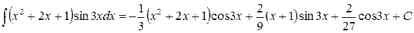 Интеграл в правой части снова интегрируем по частям. Полагая