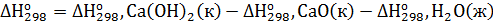 =-986,2-(-635,1)-(-285,84) = 65,26 кДж∙моль-1 Таким образом, при гашении водой 1 моль извести выделяется 65,26кДж, при гашении 1кмоль извести – 65260 кДж. М(СаО) = 56г∙моль-1=56кг∙моль-1; m(СаО) = 100кг;