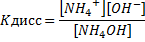 Константа диссоциации характеризует способность слабого электролита к распаду на ионы. Чем меньше величина Кдисс, тем слабее электролит. Например, КСН3СООН = 1,82∙10-5, КНСN= 7,2∙10‾ ¹º, КНСN<КСН3СООН, т.е. НСN – более слабая кислота. Обратимая диссоциация происходит в растворе слабого основания, например NН4ОН