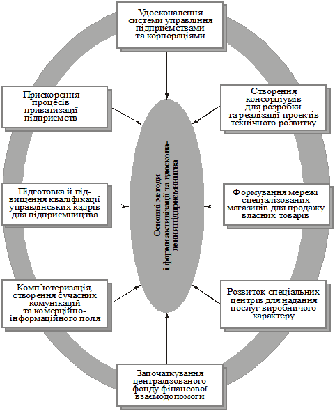 Для практичного розв’язання завдань управління ефективністю важливого значення набуває визначення основних шляхів її зростання. У темі розглядаються ті з них, що мають важливе практичне значення в сучасних умовах: вибір ефективних форм і методів підприємницької діяльності; активізація і підвищення ефективності інноваційно-інвестиційної діяльності; підвищення рівня конкурентоспроможності продукції (послуг) підприємства; оптимізація поточних витрат і розмірів підприємства. Розв’язання завдань підвищення ефективності підприємництва в інтеграційних структурах бізнесу (асоціаціях, корпораціях, концернах тощо) великою мірою залежить від якості управління та рівня господарювання. Саме для таких організаційних утворень потрібно вибирати адекватні методи й форми активізації і вдосконалення підприємництва. Одним із можливих підходів є варіант, поданий на рис. 9.2.