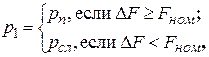 При этом следует учитывать, что при положительном сигнале рассогласования должен сработать электромагнит ЭМ 1, а при отрицательном – электромагнит ЭМ 2. В последнем случае напряжение питания ЭМП и расчетное усилие Величины давлений на условных входах в ЭГР определятся следующим образом: