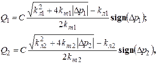 Еж, Етр, Ец – модули упругости жидкости, стенок трубопровода и цилиндра соответственно; dтр, dц – толщины стенок трубопровода и цилиндра соответственно; dтр, dц – толщины стенок трубопровода и цилиндра соответственно. Далее из уравнения (6.6) определяются давления нагрузки в обеих полостях ГЦ: