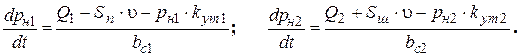 в котором Величина Исходя из условия неразрывности потока жидкости, записываются уравнения для двух полостей ГЦ: