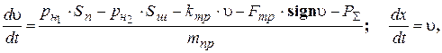 Величина перемещения штока ГЦ определятся из уравнений движения поршня: