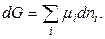 где ni – число молей i-ого компонента, М – масса растворителя в граммах. Уравнение Гибса-Дюгема. Известно, что в химической термодинамике одной из важнейших величин является химический потенциал (парциальная мольная энергия Гиббса), определяемая по уравнению:
