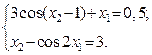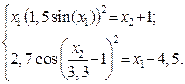 2. Для системы нелинейных уравнений, заданной вариантом (табл. 8.3), выполнить отделение корней графическим методом. Используя стандартную функцию fsolve выполнить уточнение корней уравнения. Таблица 8.3