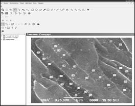 Рис. 3. Пример проведения измерений для определения объемной доли фрагментированного феррита ЗАДАНИЯ И ТРЕБОВАНИЯ К ОТЧЕТУ 1. Изучить методическое руководство к работе. 2 Получить у преподавателя образцы для исследования. 3. С помощью РЭМ получить при различных увеличениях изображения микроструктуры 4. Произвести с помощью программного продукта Thixomet PRO количественное описание параметров УМЗ структуры 5. Распечатать микрофотографии и заполнить отчет о проделанной работе.