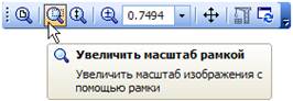 · Вращая колесо мыши «на себя – изображение будет уменьшаться. Отображение документа целиком: · Нажмите кнопку Показать всё Сдвиг изображения. Сдвиг (прокрутка) изображения документа в окне без изменения масштаба отображения. · Увеличьте любой участок чертежа вращением колеса мыши. · Нажмите колесо мыши до щелчка и не отпускайте его – курсор изменит свою форму · Перемещайте курсор, удерживая колесо мыши нажатым. Достигнув края экрана, отпустите колесо, переместите курсор в середину экрана, а затем вновь нажмите колесо и перемещайте мышь. · Нажмите кнопку Показать всё Увеличение масштаба произвольного участка изображения. Можно явно указать участок чертежа для увеличения, заключив его в прямоугольную рамку увеличения. · Нажмите кнопку Увеличить масштаб рамкой