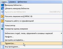 ХОД РАБОТЫ: Для документов КОМПАС в качестве имён файлов удобно использовать сочетание Обозначение – Наименование. Эти данные конструктор должен записать в основную надпись чертежа, а система может автоматически составить из них имя файла. Для этого нужно выполнить настройку. · Выполните команду Сервис – Параметры.