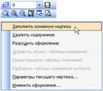 Для автоматического формирования имени файла необходимо заполнить основную надпись. Как было показано в предыдущем уроке, для активации основной надписи можно выполнить команду Вставка – Основная надпись или сделать двойной щелчок мышью в штампе чертежа. · Щелкните в любом месте штампа правой кнопкой мыши и выполните из Контекстного меню команду Заполнить основную надпись — штамп будет открыт.
